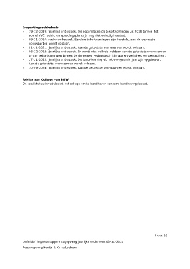 • 19-12-2019: jaarlijks onderzoek. De geconstateerde tekortkomingen uit 2018 binnen het